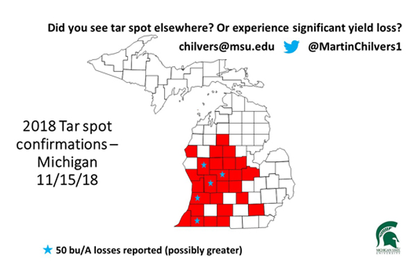 Tar spot now reported in 26 Michigan counties